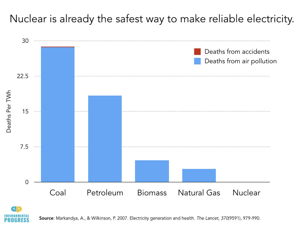 Nuclear energy is the cleanest form of baseload power that we already utilize as a reliable source of energy. Here in the US there is a fleet of 120 reactors that have been quietly producing 20% of our nation’s baseload power for decades. It is clean not only because it is carbon-free, but it also contains 100% of all its waste products within the reactor and this material can be stored safely long-term. The same cannot be said for coal-fired power plants that continually release not only CO2 into the atmosphere but many other toxins, volatiles, and yes, even naturally occurring uranium and other radioactive elements are emitted from coal-fired power plants.